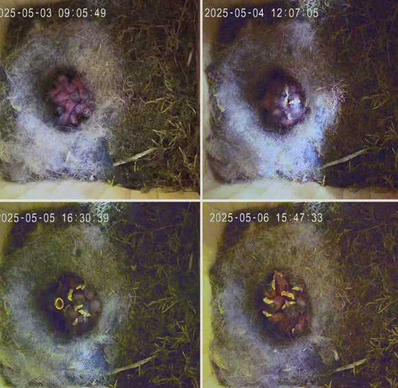 „Nestwächter in Wartestellung“ – Die kleinen Insassen sitzen erwartungsvoll im Nistkasten. Bald stark genug, um die erste Flugstunde zu absolvieren.